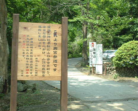 山頂を目指してさらに登ると、みすぼらしい奥宮と売店の看板、これ売店のおばちゃんが書いたのかな?