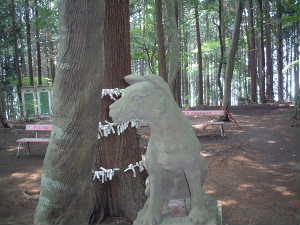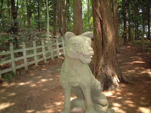 こま犬か?それとも山の神の神使「大口真神(オオグチマカミ)」か? ・・・・詳しくは奥宮の写真鳥居の左にある説明書きを見てね。